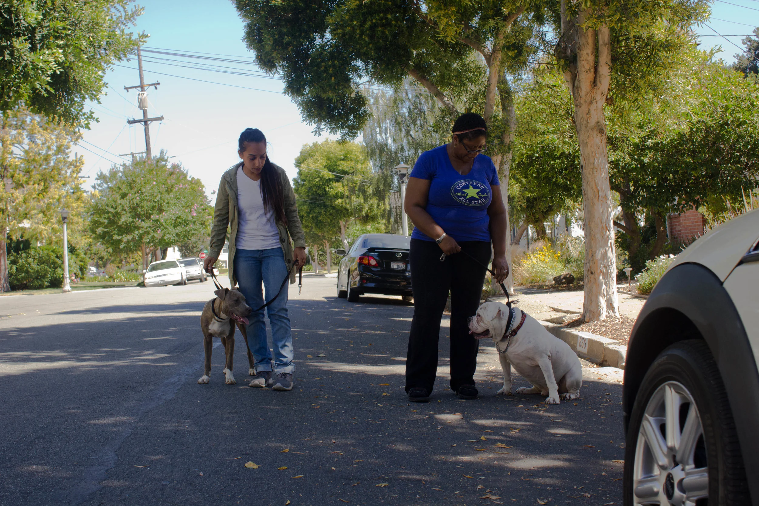“I recently relocated to the Bay area from the East Coast. I have 2 very “charming” young high energy pit-bulll mix rescue dogs. I love my dogs more than anything, but together they are a handful. As they matured, walking them became more and more of an issue. They are both quite strong and were not leash trained appropriately from the very beginning. In addition, the older of the 2 became very protective of “her” pack. She was beginning to develop aggression issues with other dogs. Needless to say, I felt very disappointed and sad because of the stress they were both under as well as myself. Walking my dogs became an exercise in frustration, anxiety and at moments potentially dangerous to other dogs in my neighborhood. Thus began my search for help.